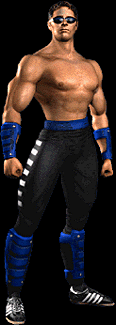 BIO After Shao Kahn's defeat, Cage's soul is free to leave to a higher place. From the heavens, he observes his friends engaged in battle. With the heavens in disarray, he learns of the war waged against the Elder Gods by Shinnok. Cage seeks out Raiden to help him restore his deceased soul and join Liu Kang in his quest. Once again, Johnny Cage finds himself fighting alongside Earths greatest warriors. MOVES Weapon : Broad Sword Ready Weapon : F, D, F + LP Nut Punch : BLK + LP Shadow Kick : D, F + LK Dashing Uppercut : B, D, B + HP Low Fireball : D, B + LP High Fireball : D, F + HP Fatality #1 : D, D, F, D, BL (Close) (Cage uppercuts your head off in one punch) Fatality #2 : F, B, D, D, HK (Close) (He grabs you by the torso and pulls your body in half ) Prison Stage Fatality : D, F, F, HK (Close) Goro's Lair Fatality : B, F, F, LK (Close) Kombo #1-- Tap HK, LK, B, F+LK --25% damage Kombo #2-- Tap HP, HK, BL+LP --20% damage ENDING You see a picture of a stage with a podium, and then they announce Johnny Cage as the winner of an award and Cage walks up, thanks a few people and then ends it with "When am I going to get some real competition?" The crowd then goes silent and Cage asks "Why the silence?" Then they start to boo him and you see different objects like wine bottles and other stuff start to fly up and hit him as he dodges and blocks them. He also says "Hey, I saw that Arnold!" And the voice that says "You suck!" sounds like Arnold Schwarzenegger.