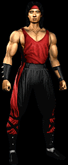 BIO Still the immortal champion of Mortal Kombat, Liu Kang finds himself venturing into the realm of Edenia to rescue the Princess Kitana from the vile clutches of Quan Chi. Unsuccessful in his mission, Liu returns to Earth and mounts an effort to bring together Earth's greatest warriors. He does it this time not only to free Kitana's home world but also to assist his mentor and Earth's protector - Raiden. MOVES Weapon : Flamberge Sword Ready Weapon : B, F, LK Fireball : F, F, HP Low Fireball : F, F, LP Flying Kick : F, F, HK Bicycle Kick : Hold LK (3 seconds) Fatality #1 : F, F, F, D, BLK+HK+LK (Sweep) (He turns into his classic dragon, bites you, thrashes you about in his mouth, and throws you down) Fatality #2 : F, D, D, U, HP (Close) (Liu throws you into the screen. When you're right about to hit the screen he chucks a fireball at you and you blow up right on the screen) Prison Stage Fatality : F, F, B, LP (Close) Goro's Lair Fatality : F, F, B, HK (Close) Kombo #1-- Jump in deep, tap HK, F, F+HK --20% damage Kombo #2-- Jump in deep, tap HK, F, F+HP --20% damage (Note: This combo can be done in the air.) ENDING Liu Kang is in the dojo. He starts to say how he failed to save Kitana and her home land by winning the tournment. But then Kitana appears though a portal and says she and her home world are alright. She then asks for Liu Kang to come with her so they could be King and Queen. Liu Kang says no, he can't leave earth. He must stay and protect earth.