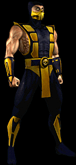 BIO In hopes of gaining Scorpion as a new ally in the war with the Elder Gods, Quan Chi makes the dead ninja an offer he cannot refuse - Life, in exchange for his services as a warrior against the Elders. Scorpion accepts, but hides behind ulterior motives. MOVES Weapon : Broad Sword Ready Weapon : F, F, HK Spear : B, B, LP Teleport Punch : QCB, HP Air Throw : BL (While in mid-air) Fatality #1 : B, F, F, B, BL (Past sweep) (It's the old reliable of fatalities. He takes off his mask and toasts you with a breath of fire. Then the character runs around screaming in pain until they fall and die. Scorpion even looks on!) Fatality #2 : B, F, D, U, HP (Close) (He turns into a Scorpion (finally) and stabs you in the torso with his stinger. He then pulls you in half) Prison Stage Fatality : F, D, D, LK (Close) Goro's Lair Fatality : B, F, F, LK (Close) Kombo #1-- Jump in deep, tap HK, B, B+LP, D+HP --23% damage Kombo #2-- Jump in deep, tap HK, D, B+HP, F, F+LP, D+HP --28% damage ENDING Scorpion is saying how he finally gets revenge for the death of his clan. Then Sub-Zero says, "Well, you are getting revenge on the wrong person". Scorpion asks who the real killer is as Quan Chi walks up and says that he was. Quan Chi then tells Scorpion that it's time to return to the Netherealm. You start to see Scorpion fade as a bright light is seen behind him, but before he totally disappears he runs over to Quan Chi and takes Quan Chi with him to the Netherealm. They both end up in Scorpion's Hell stage from UMK3 but now it's in 3D. Quan Chi starts to yell in terror.